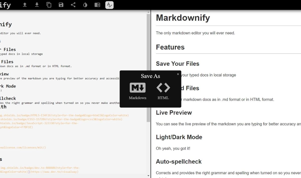 Easily Save and download markdowns in html format, All your markdowns are saved to Indexed DB and are accessible in offline mode.